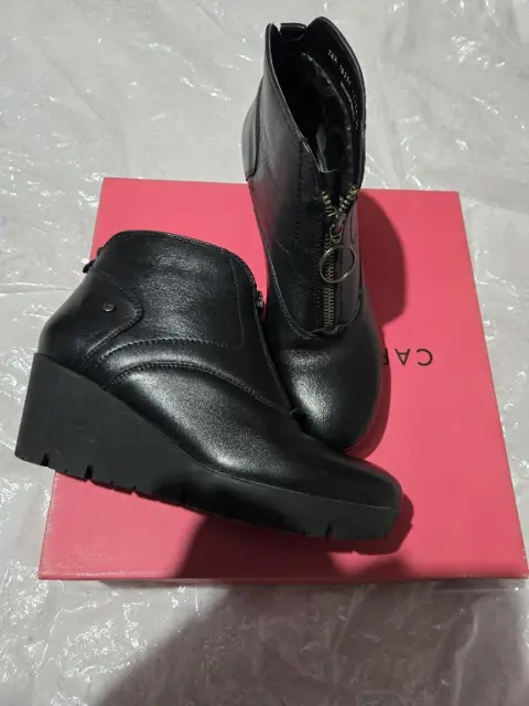 Botines talla 24.5 carlo rossetti. Botines tono negro, alto 6.5 cm, una puesta sin detalles, ajusta con el cierre, interior acolchado, confortables