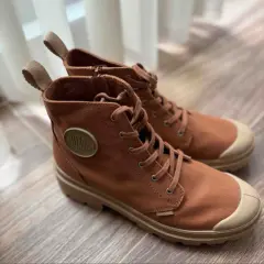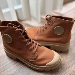Botas combat al tobillo color rosa con puntera, cierre lateral y agujetas. Excelentes condiciones, marca Palladium