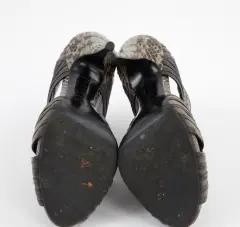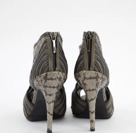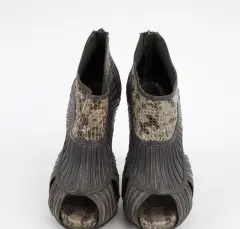 Espectaculares zapatillas tipo botin con punta abierta, piel de piton, 37 USA 3.5 MEX.