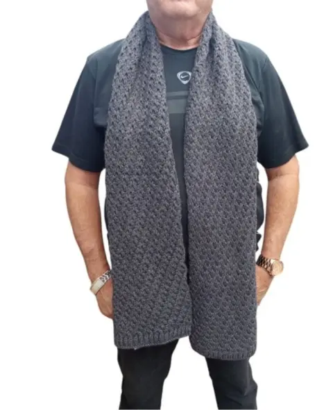 Eidos Marcoli Bufanda de Lana, color Gris oscuro, unitalla, estilo crochet con elegante diseño, hecha de 100% Lana, mide 210cm de largo con 32cm de ancho, Nueva a estrenar con etiqueta en buen estado cosmetico.