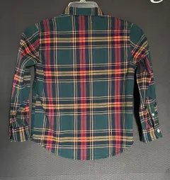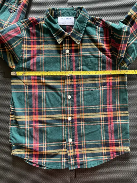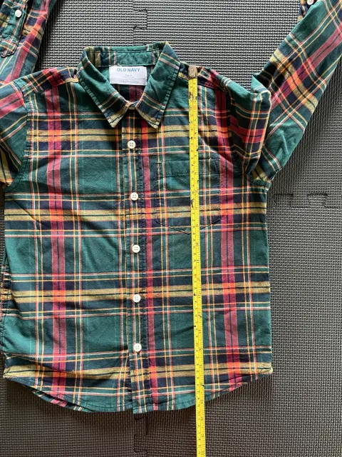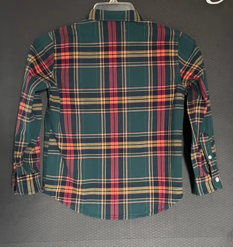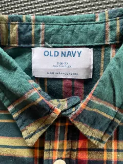 Old Navy camisa de niño 👦🏻. Old Navy camisa de niño verde con líneas que forman cuadros en amarillo y rojo. Talla: S (6-7)Color: verde/rojo/amarilloMaterial: 97% algodón y 3% spandex Cuidado: lavar en máquina Medidas: ancho de sisa a sisa: 38 cm, largo desde hombro hasta abajo: 49 cm