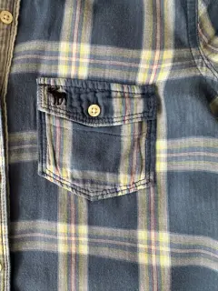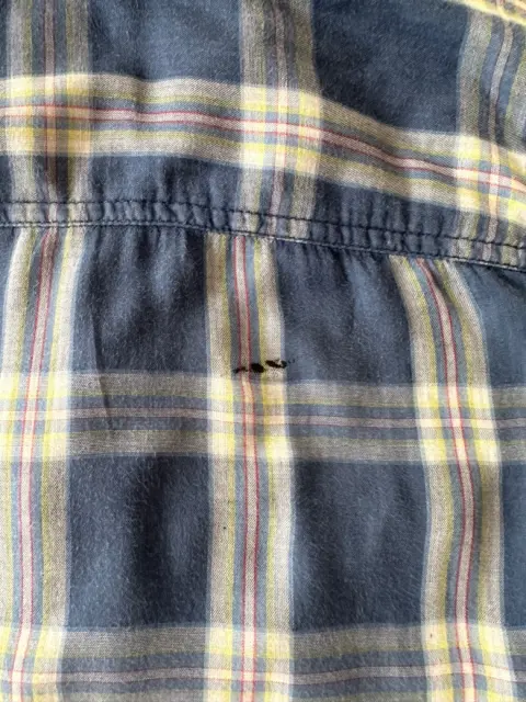 Camisa manga larga a cuadros, tiene mancha en la espalda se ve en la foto.Talla: S Medidas: 37 cm hombros, 47 cm axilaY 61 cm largo.
