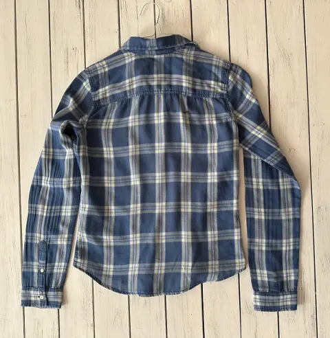 Camisa a cuadros Abercrombie. Camisa manga larga a cuadros, tiene mancha en la espalda se ve en la foto.Talla: S Medidas: 37 cm hombros, 47 cm axilaY 61 cm largo.