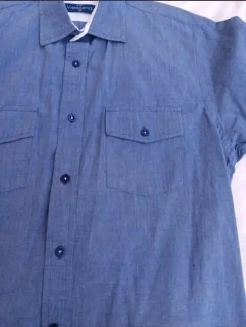 Camisa manga corta en color azul mezclilla, de la marca Weekend , Talla Chica, sin detalles,en perfectas condiciones Medidas. 42 CM hombro, 55 CM axila, 69 CM largo ❣️ PRECIO NO NEGOCIABLE 💵 COMPRA INMEDIATA 🚫....... NO BLOQUEES si no estas segura de tu compra.