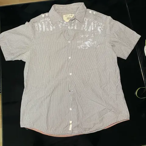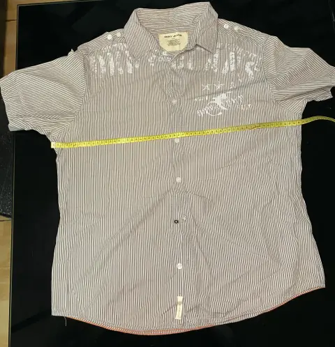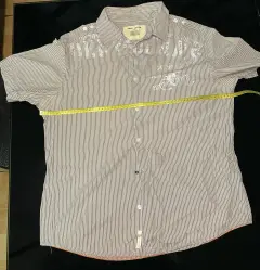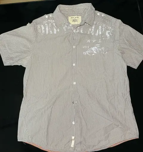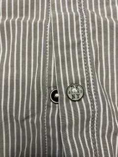 Camisa Marca DKNY, talla L, color a rayas café con blanco, muy confortable que cuenta con un hermoso estampado. Su textura suave y su ajuste relajado lo convierten en la opción perfecta para un día casual, ya sea en casa o fuera con amigos.