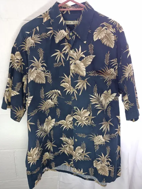 Excelente camisa Hawaiana marca Batik Bay, fresca color dorado/negro, en excelente estado
