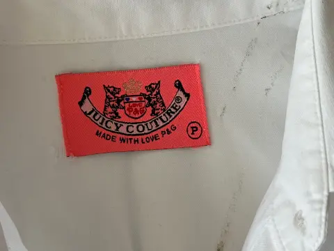 Camisa Juicy Couture. Camisa 100% algodón, manga larga, tiene pinzas que dan forma a la cintura, los detalles se ven en fotos. No es stretch. Talla: XXS o XSMedidas: 36 cm hombros, 44 cm axila y 58 cm largo.