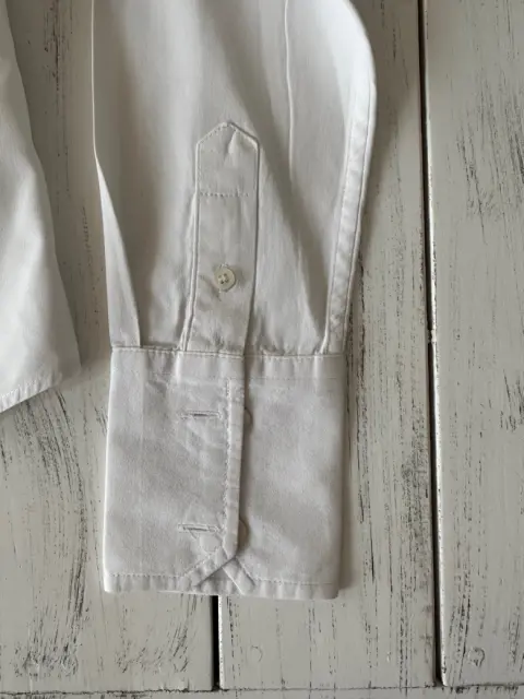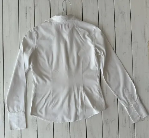 Camisa 100% algodón, manga larga, tiene pinzas que dan forma a la cintura, los detalles se ven en fotos. No es stretch. Talla: XXS o XSMedidas: 36 cm hombros, 44 cm axila y 58 cm largo.