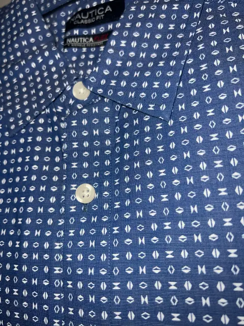 Camisa NAUTICA Classic fit - Talla M+ Wrinkle ResistantResistencia a la fricciónAzul con patrones blancos
