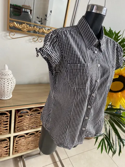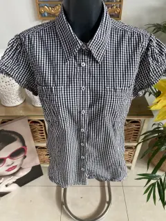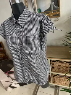 CAMISA VICHY TOMMY H.. Linda blusita Tommy H. De tela fresca. Estampado vichy ▫️▪️▫️▪️.Bolsitas en pecho (izquierdo con logo grabado). Manga casquillo con cintas para hacer moñito. ★·.·´𝑴𝒆𝒅𝒊𝒅𝒂𝒔`·.·★Axila a axila 53 cmLargo 60 cm.🧵 100% algodón🪡