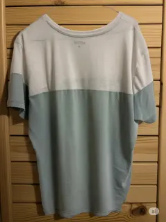 Camiseta Bicolor: Estilo y Rebelion. ¡Luce un estilo único y desenfadado con nuestra camiseta bicolor!Esta prenda, dividida horizontalmente en un fresco blanco/crema claro en la parte superior y un relajante verde azulado/aguamarina en la inferior, es la elección perfecta para quienes buscan un toque de originalidad.El detalle que la hace especial: un pequeño y distintivo logotipo de calavera en el pecho, añadiendo un aire misterioso y audaz a tu look. Además, una sutil etiqueta roja en el dobladillo inferior complementa su diseño exclusivo.Confeccionada en un tejido suave, posiblemente algodón, te garantiza comodidad durante todo el día. Su diseño relajado y la iluminación uniforme de la prenda en la imagen te muestran su auténtico encanto.¡Atrévete a destacar con esta pieza versátil que combina confort y estilo!