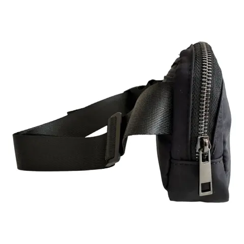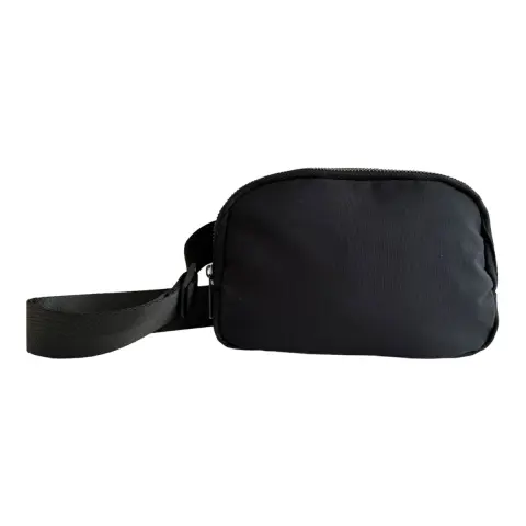 Bolsita en nylon con 2 cierres exteriores y por dentro 3 compartimentos sin cierre.Medidas aproximadas: 22 cm largo, 13 cm alto y 5 cm ancho. Como referencia cabe un iPhone 16 Pro Max
