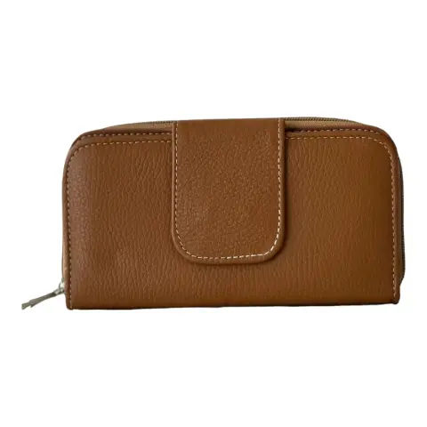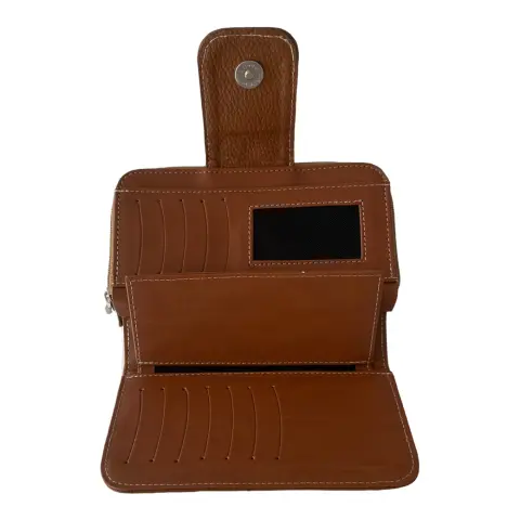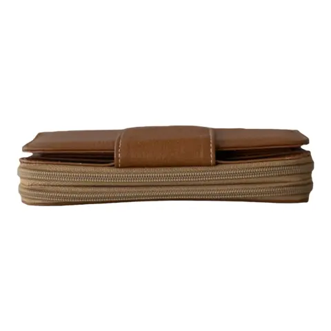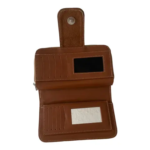 Cartera café. Cartera de piel con espacio para tarjetas, monedas y billetes. Tiene espejo.Medidas: 19x 9.5x 4