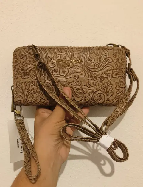 Cartera doble cierre DARCY MARKS LONDON 👗👛👜. Hermosa cartera con un diseño elegante y práctico. Cuenta con múltiples compartimentos en su interior para organizar tarjetas, tickets, billetes y más. Además, incluye un bolsillo interno con cierre, perfecto para guardar monedas de manera segura. Cuenta con 2 asas, chica y grande. El asa grande se puede retirar.Medidas:Largo 20 cmAlto 10 cmAncho 4 cm