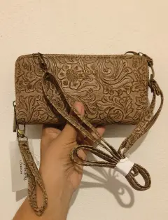 Hermosa cartera con un diseño elegante y práctico. Cuenta con múltiples compartimentos en su interior para organizar tarjetas, tickets, billetes y más. Además, incluye un bolsillo interno con cierre, perfecto para guardar monedas de manera segura. Cuenta con 2 asas, chica y grande. El asa grande se puede retirar.Medidas:Largo 20 cmAlto 10 cmAncho 4 cm