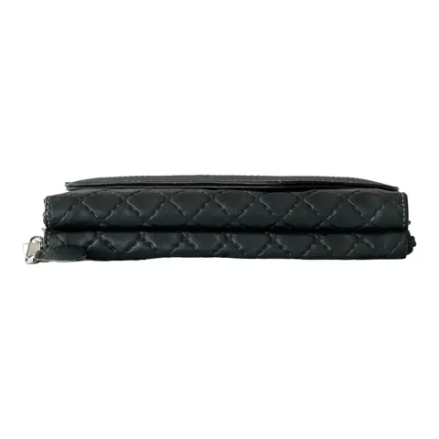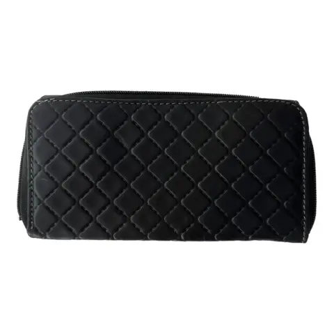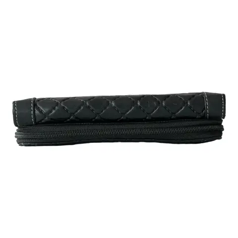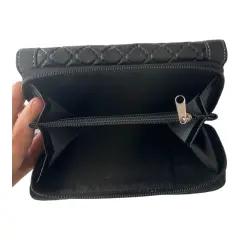 Cartera negra de piel. Cartera negra de piel hecha en México un espacio con monedero y cierre y otro con broche con iman, trae espejo.Medidas: 19 cm de largo, 10 cm ancho y 4 cm de grueso.