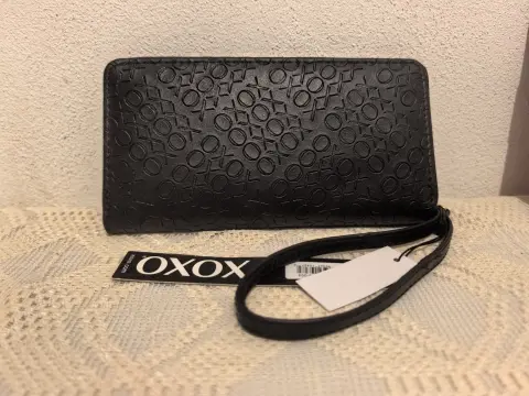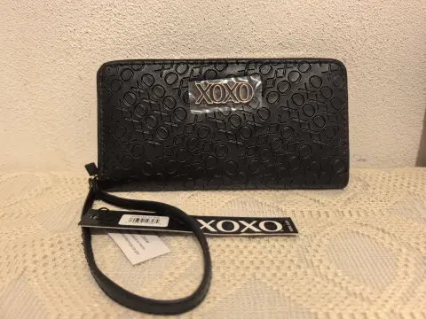 Cartera negra XOXO. Padrisima cartera negra marca XOXO, con una pequeña asa para la muñeca. Cierre, espacio para tarjetas, espacio para monedas con cierre. Mide 19X10X3 cm., aproximadamente.