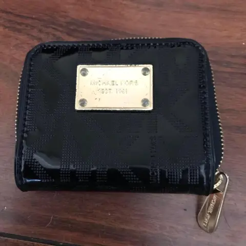 Michael Kors cartera. Michael Kors cartera negra charol, interior en dorado, tiene lugar para tajeras, monedero ya lugar para billetes.