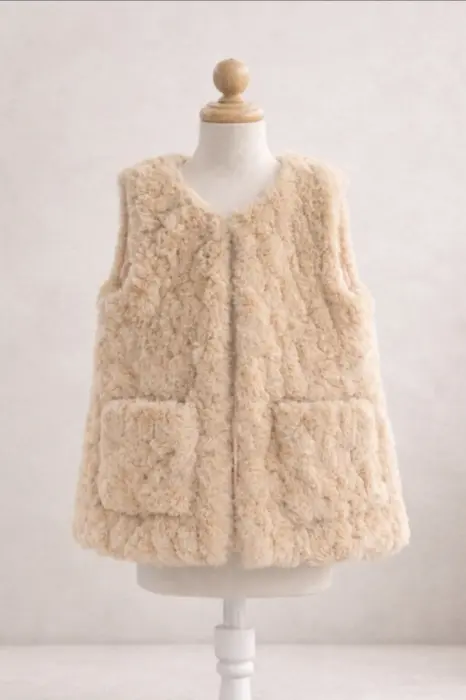 Chaleco de niña invierno. Chaleco afelpado color beige/crema, suave y muy calientito. Diseño cómodo y ligero, ideal para usar sobre suéteres o sudaderas en clima frío. Cuenta con bolsillos frontales funcionales y un acabado tipo peluche que lo hace muy versátil y fácil de combinar. Perfecto para uso diario, otoño e invierno. En muy buenas condiciones y con poco uso.