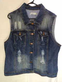 Chaleco de mezclilla dama Refill Talla M. Cómo nuevo, chaleco de mezclilla para dama talla 13 de diseño vintage el rasgado es original de la prenda, marca Refill, solo se usó una vez.