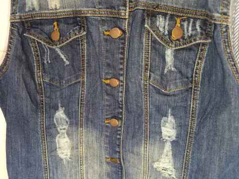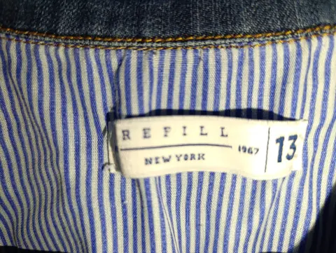 Cómo nuevo, chaleco de mezclilla para dama talla 13 de diseño vintage el rasgado es original de la prenda, marca Refill, solo se usó una vez.
