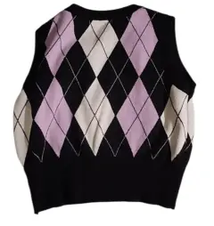Chaleco del punto con patrón rombo. Chaleco cuello v42% viscosa10%polimide28%poliester10 % elásticoDescripción en las etiquetasLe puede quedar a una persona que pese 70 kg