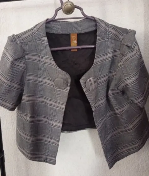 Chaleco manga corta. Chaleco manga corta elegante color gris de cuadros