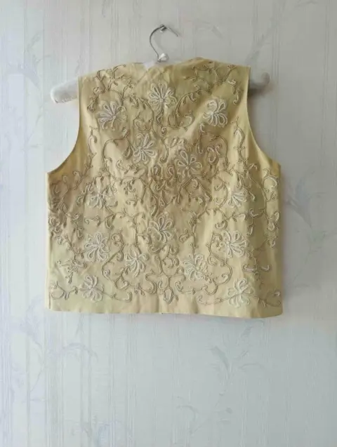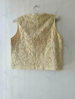 Top tipo chaleco bordado 100% seda. Hay prendas que te dan ese aire de elegancia chic! NUEVA!! Perfecto para la temporada. 100% seda. Forrado. Lo puedes usar solo a manera de top o con una prenda por debajo. Totalmente bordado al frente y la espalda. No le falta ninguna perlita. Ideal con un pantalón blanco y sandalias. Más opciones en mi clóset. Fiel a su talla.