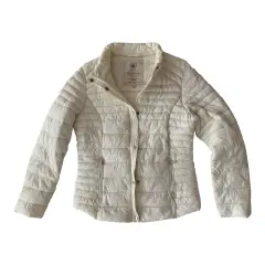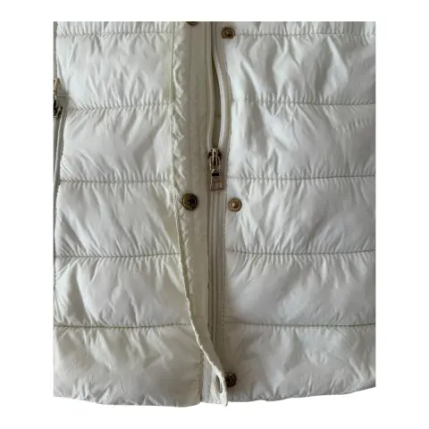 Chamarra beige, ligera, sin capucha con bolsillos externos que tienen cierre. Se abotona y también tiene cierre. Talla: M no estira Medidas aproximadas: 39 cm hombros, 47 cm axila, 42 cm cintura y 66 cm largo
