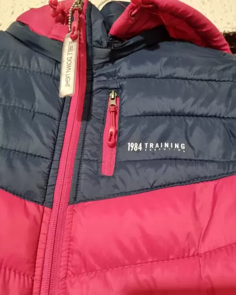 Chamarra cazadora. Chamarra tipo cazadora rosa con azul marino en el puño trae para sacar el dedo pulgar viene delgada pero muy calientina nada estorbosa tre incluidos audifonos para tu cel.