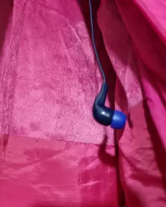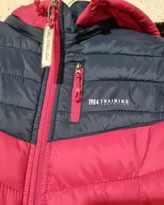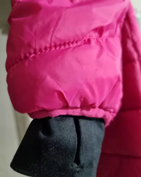 Chamarra tipo cazadora rosa con azul marino en el puño trae para sacar el dedo pulgar viene delgada pero muy calientina nada estorbosa tre incluidos audifonos para tu cel.
