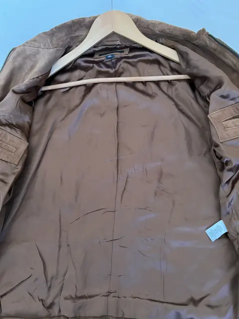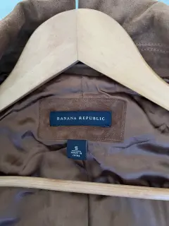 Chamarra de gamuza Banana Republic. De gamuza color café , en buen estado , tiene unas manchas obscuras en la manga por el uso , muy pequeñas no se aprecian en la foto .