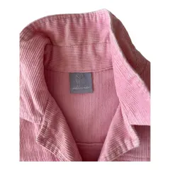 Chamarra de pana rosa. Chamarra rosa de pana, no tiene bolsillos, todos son adorno. El color es más bajo que las fotos y en algunas partes se ve como despintado. Se aprecia en las fotos. No estira. No tiene forro.Talla: 7Medidas: 40 cm hombros, 45 cm axila y 49 cm largo.