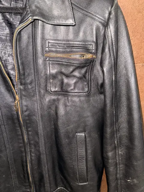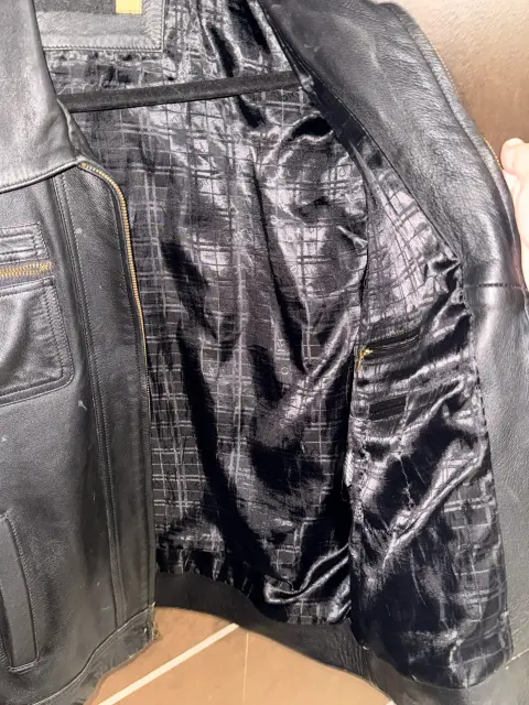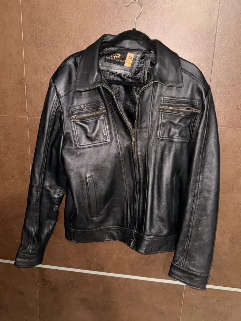 Bonita chamarra d piel, todos los cierres funcionan. El forro está en buen estado, es talla M, 45 cm de ancho en espalda