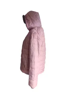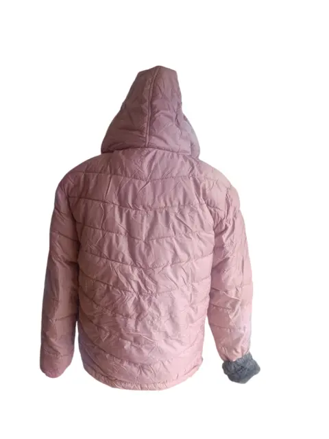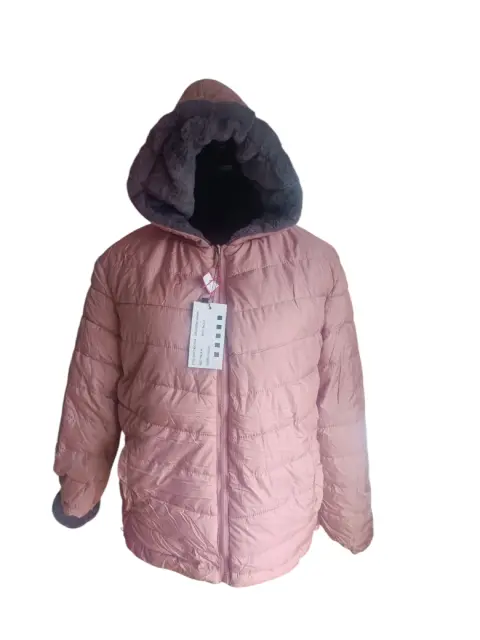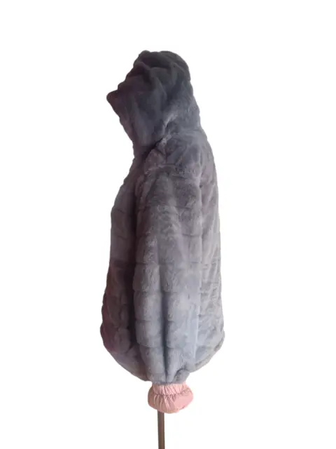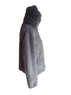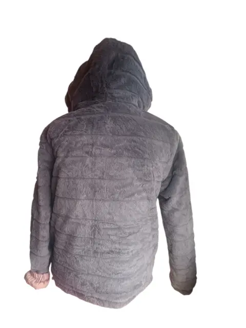CHAMARRA DOBLE VISTA, GRIS TIPO PELUCHE DE UN LADO,DEL OTRO ROSA TIPO ROMPEVIENTOS, TALLA M, MARCA RENUAR, MIDE DE HOMBRO A HOMBRO 50 CM,DE AXILA A AXILA 57 CM,DE LARGO 62 CM