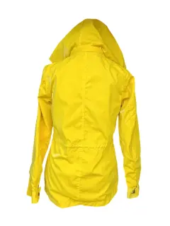 CHAMARRA DOBLE VISTA TALLA S. CHAMARRA DOBLE VISTA, AMARILLA TIPO IMPERMEABLE,DEL OTRO BLANCA CON NEGRO (HOJAS) TIPO ROMPEVIENTOS, TALLA S, CADA VISTA TIENE 2 BOLSILLOS FUNCIONALES, GORRO DESMONTABLE, MIDE DE HOMBRO A HOMBRO 37 CM,DE AXILA A AXILA 46 CM,DE LARGO 70 CM