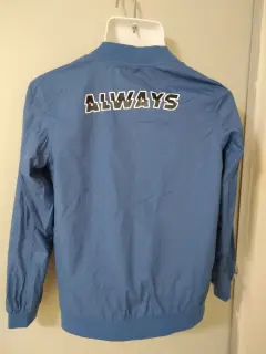 Chamarra rompe vientos color azul rey, en muy buen estado, tanto en forro como esterior, con letras modernas en la parte de al frente del lado izquierdo, excelente para el verano .