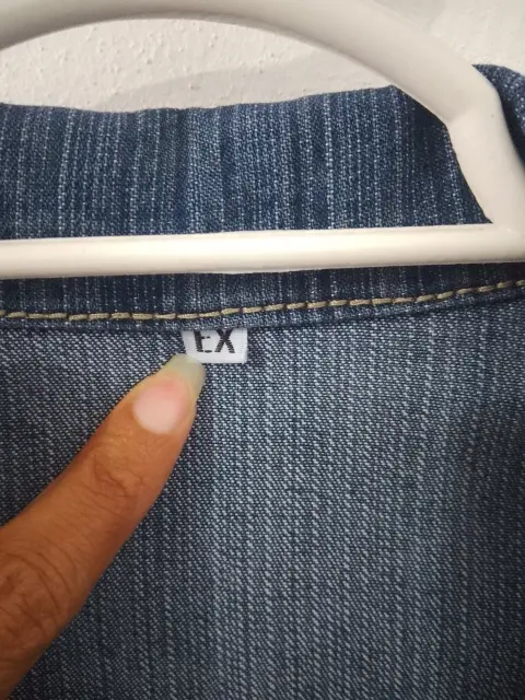 Largo manga 58 Ancho manga 16 Largo delante 52 Ancho hombro a hombro 43 Largo atrás 57 Detalles recién pintada de color azul marino si tiene unas partes deslavado Bolsas con bordado y detalles( en las fotos se ve profundidad y cercanía al bordado) Botones completos (3 botones) Sin forro
