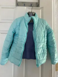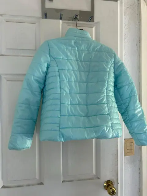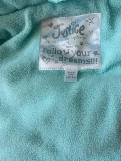 Chamarra marca Justice (ya se fue de México) en excelente estado, muy calientita y el color es increíble Es talla 12/14 de niña podría quedar a XS o S
