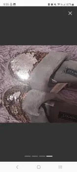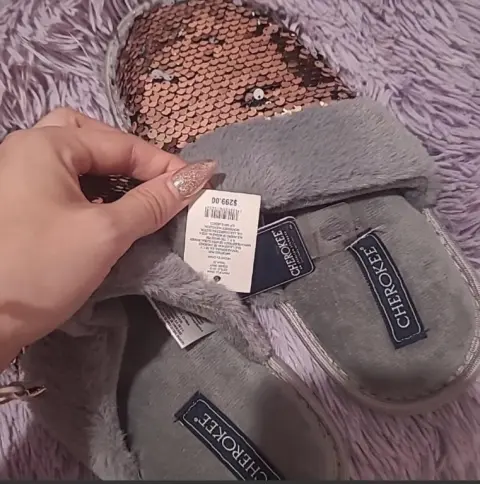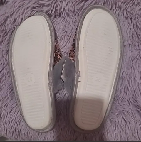 Pantuflas lentejuelas. Sin detalles, queda a 2 y 3 pie delgado