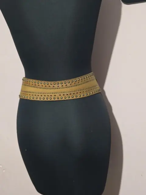 Cinturón ancho color camel de piel, nuevo sin detalles, mide 90cm largo, ajusta mediante hebilla