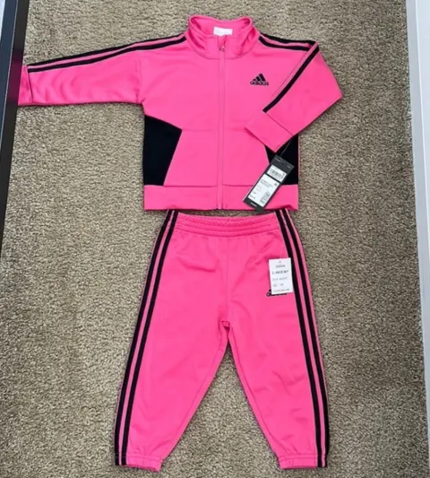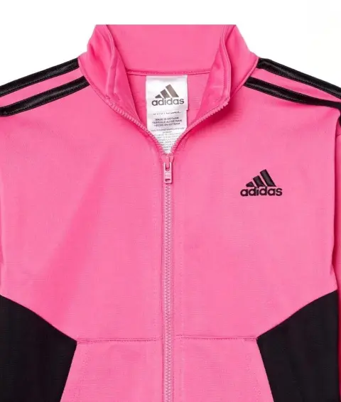 Chamarra y pants color rosa con negro, marca Adidas, para niña, talla 4
