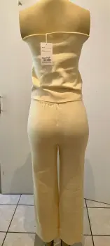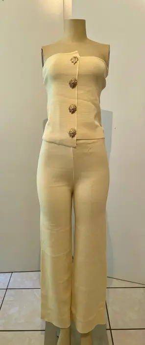 Conjunto de punto amarillo mantequilla. Conjunto de punto strech strapless con botones joya; nuevo con etiqueta