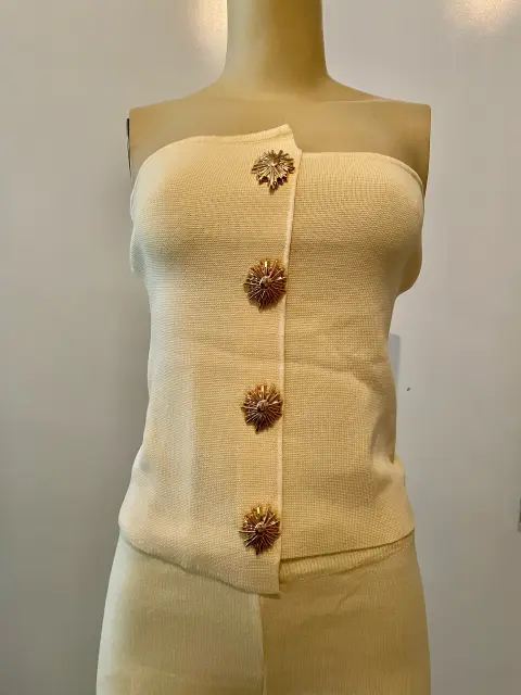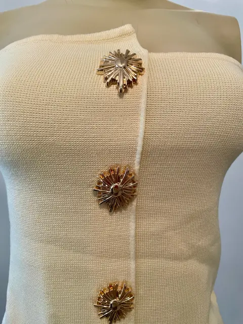 Conjunto de punto strech strapless con botones joya; nuevo con etiqueta