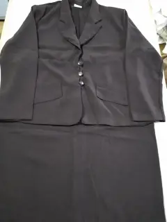 Conjunto de Saco y Falda Café XL. Conjunto de Saco y Falda Café Obscuro Talla XL Marca Lady One Nuevo Falda mide 90 Cms de Cintura y 116 Cms de cadera Abertura TraseraSaco mide 59 Cms de Axila a Axila La tela trae Spandex pero no estira mucho