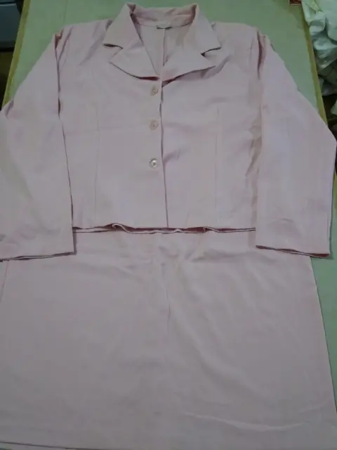 Conjunto de Saco y Falda Rosa Talla XL Marca Lady One Nuevo Falda mide 90 Cms de Cintura y 116 Cms de cadera Abertura TraseraSaco mide 59 Cms de Axila a Axila La tela trae Spandex pero no estira mucho