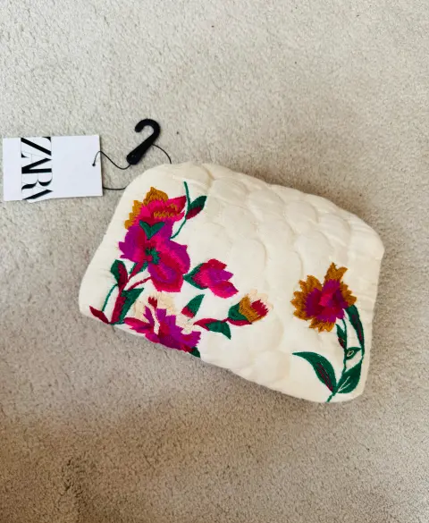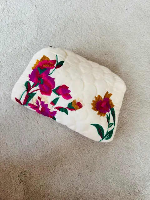 No olvides siempre llevar una cosmetiquera en tu bolsa o equipaje!! Hermosa y NUEVA! Cosmetiquera pequeña para bolsa bordada en algodón. 100% lavable y forrada por dentro con tela ahulada para evitar que se dañe el exterior en caso de un derrame. Sin detalles. Perfecta para regalo. No mascotas y no fumadora. Más opciones en mi clóset.