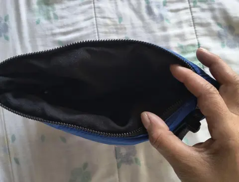 Cosmetiquera azul. Mínimo uso y sin ningún detalle. Forro interior. Cierre con logo de la marca
