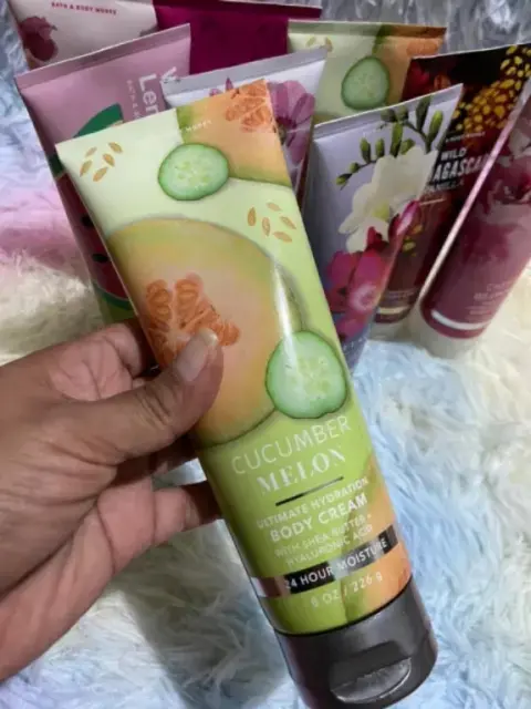 Cucumber Melon Crema Corporal. Cucumber Melon Crema Corporal 226g Bath & Body Works, su aroma es muy fresco, dulce y muy clásico, sus Notas de fragancia: pepino fresco, melón dulce acuoso, melón de verano, pomelo chispeante y maderas puras. 💯 original americano.