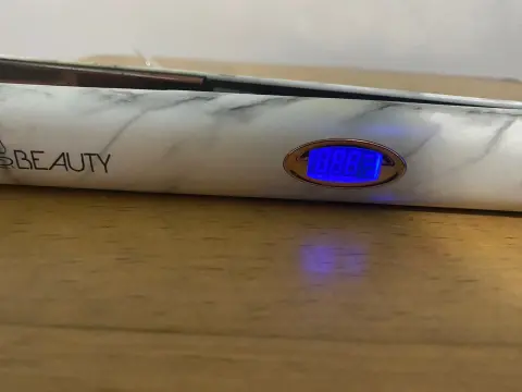 Alaciadora en uso , está en buen estado, solo tiene unas ligeras manchas amarillas en la punta